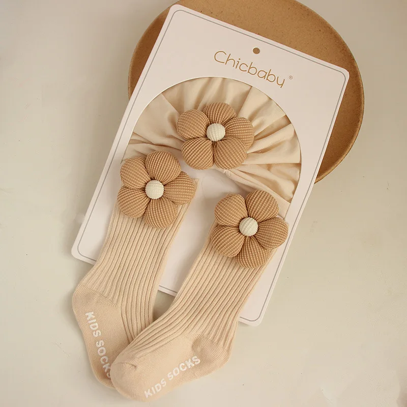 0-12M Infant Accessories Cute Flower Autumn Winter Cotton Warm Newborn Baby Bebe Girl Hat Socks Two Pieces Set