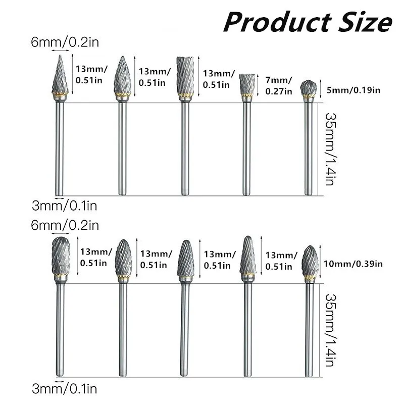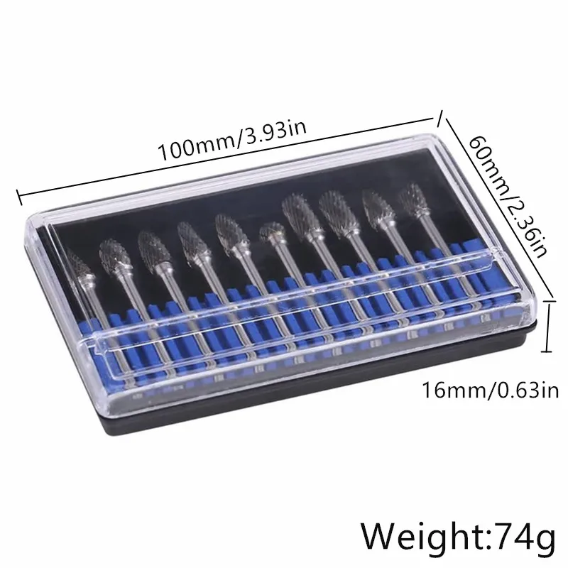 10pcs Carbide Burr Set, Hard Alloy Tungsten Steel Double Cut Rotary File Milling Cutter Head, Woodworking Grinding Carvin
