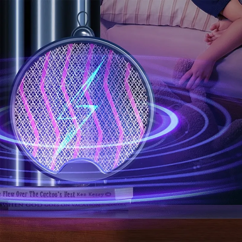 1pc 3000V Foldable Electric Mosquito Killer Fly Swatter Trap USB Rechargeable 4 In 1 Mosquito Racket Insect Killer Bug Zapper