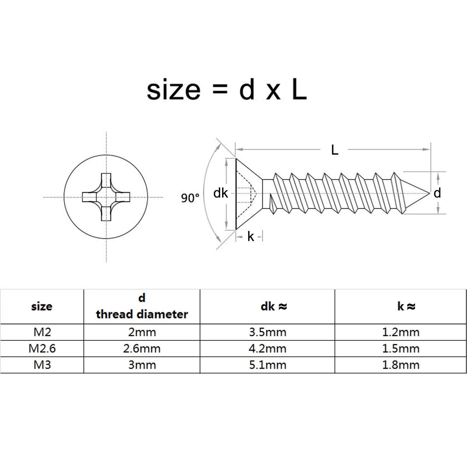 Size =d(thread diameter) xL(total length)