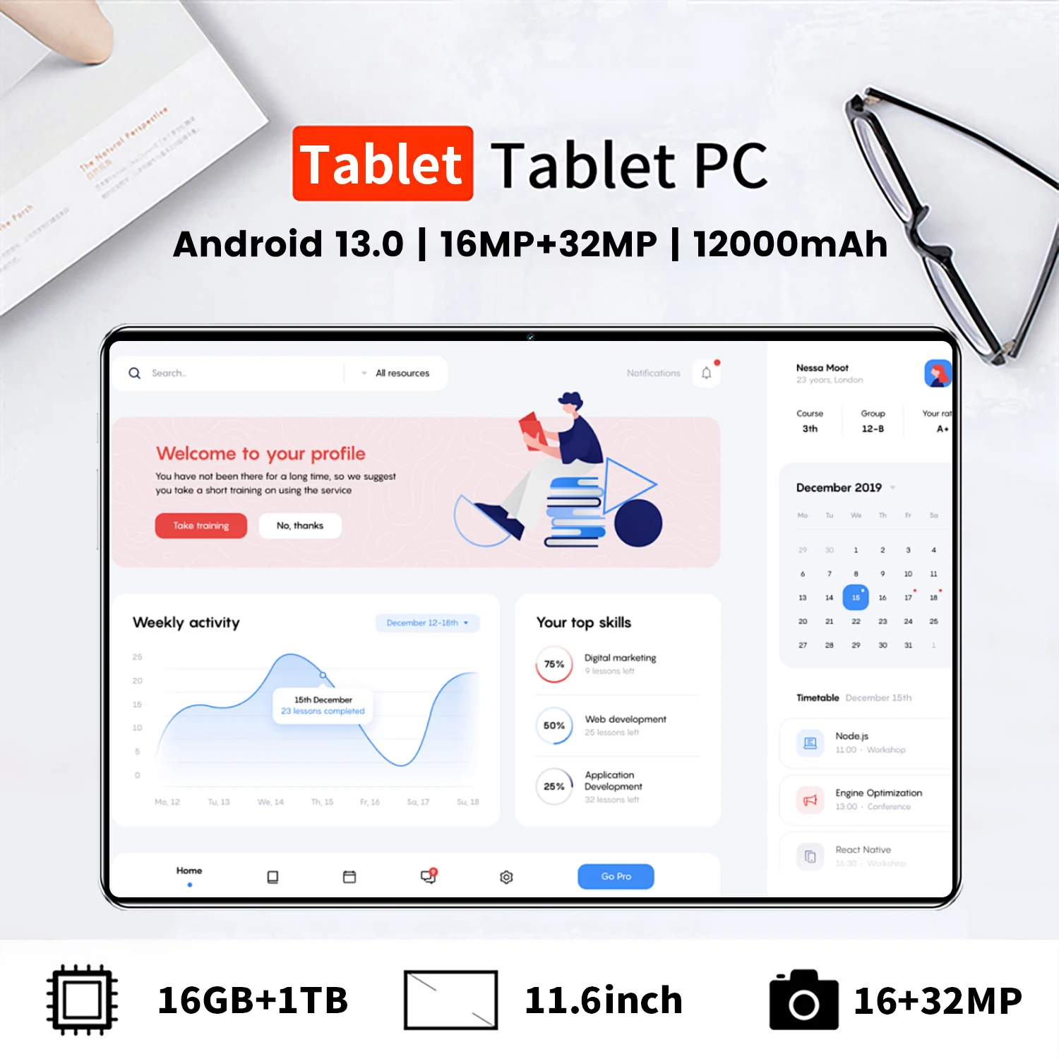 2024 Brand New 5G 11.6 inch Tablet Android 13.0 tablet MTK6797 16GB RAM 1TB ROM Tablet PC 12000mAh Dual sim card Wifi Type-c