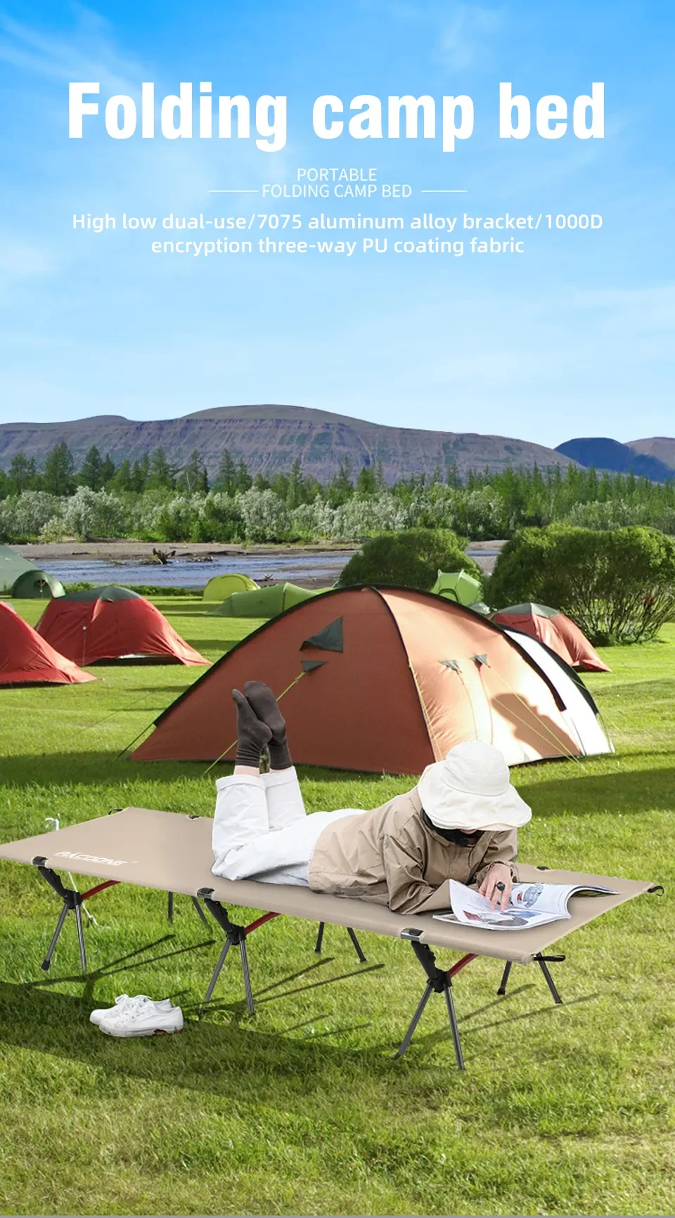 1.The Bracket Of this Folding Camping Bed Is Made Of 7075 Aviation Aluminum, Which Is Light, Strong And Durable. TheBed Cloth Is Made Of 420D Oxford Cloth.