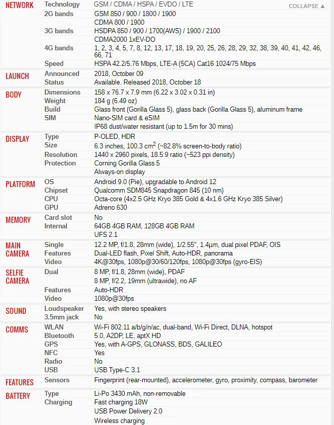 Google Pixel 3 XL Smartphone 6.3" Qualcomm 845 Dual Front Camera 4GB RAM 64GB/128GB ROM Mobile Unlocked Original Cell Phone WiFi