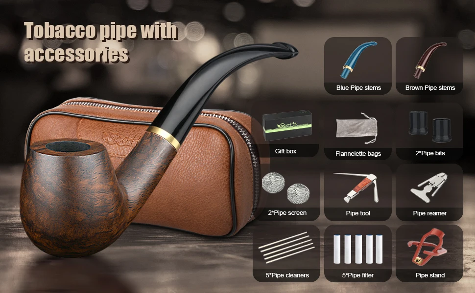 Super perfect match tobacco pipe set,gift package,worth to buy, saves your time on choosing needed accessories, it’s a wonderful gift for Xmas presents, Thanksgiving Day, Christmas Day, Father’s Day and Birthday etc.