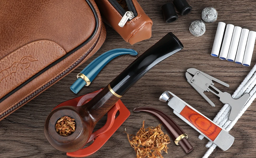You will get one wooden pipe and high-end pipe bag as well as many very practical pipe accessories. It can be said that only one set can meet all your smoking needs.you do not need to buy any accessories separately.It is very convenient.