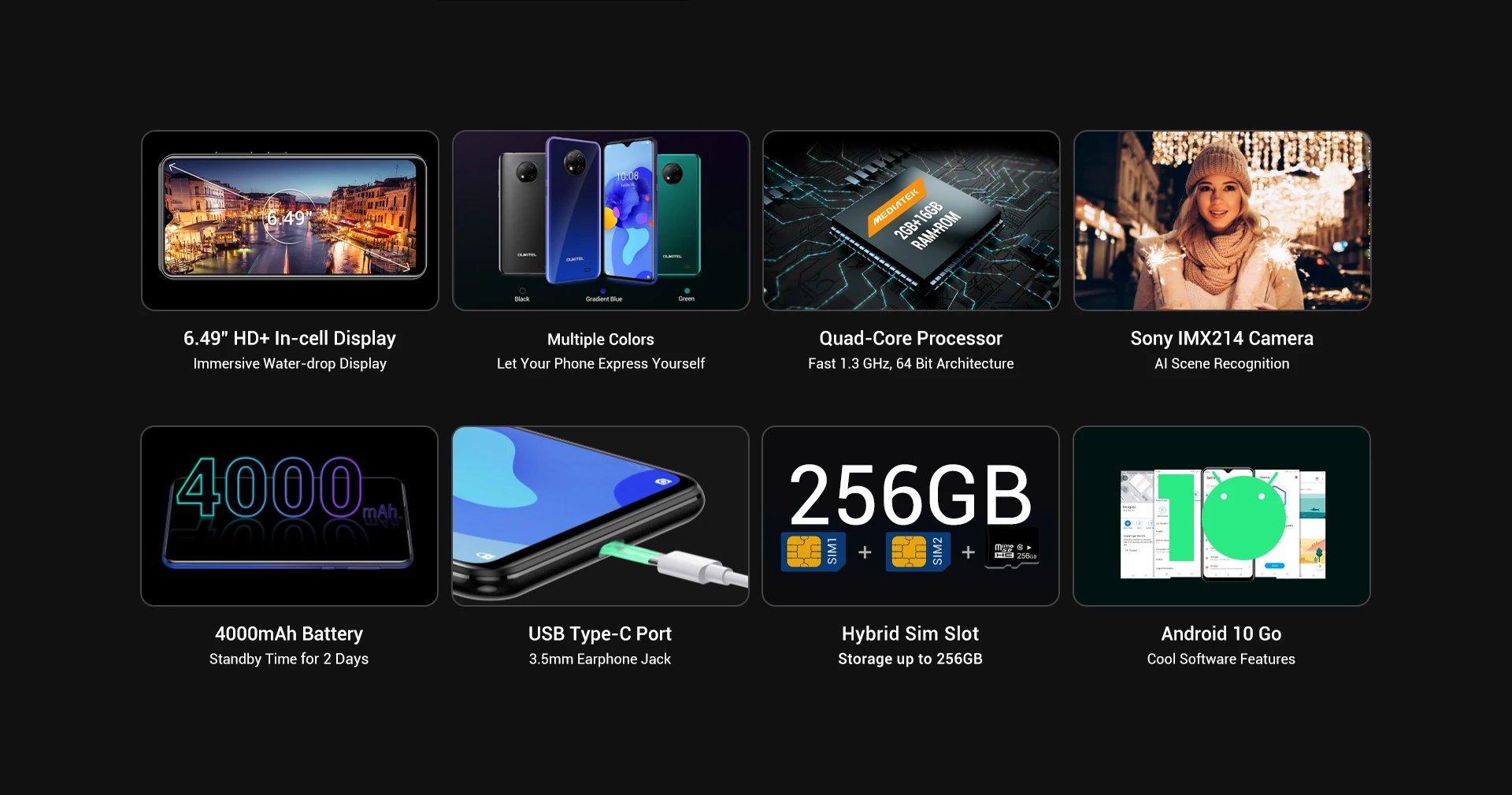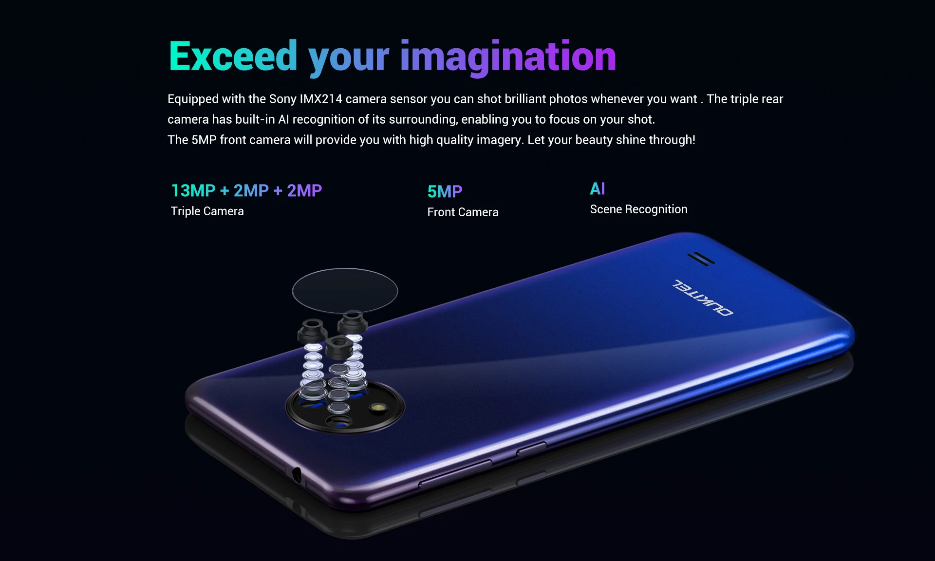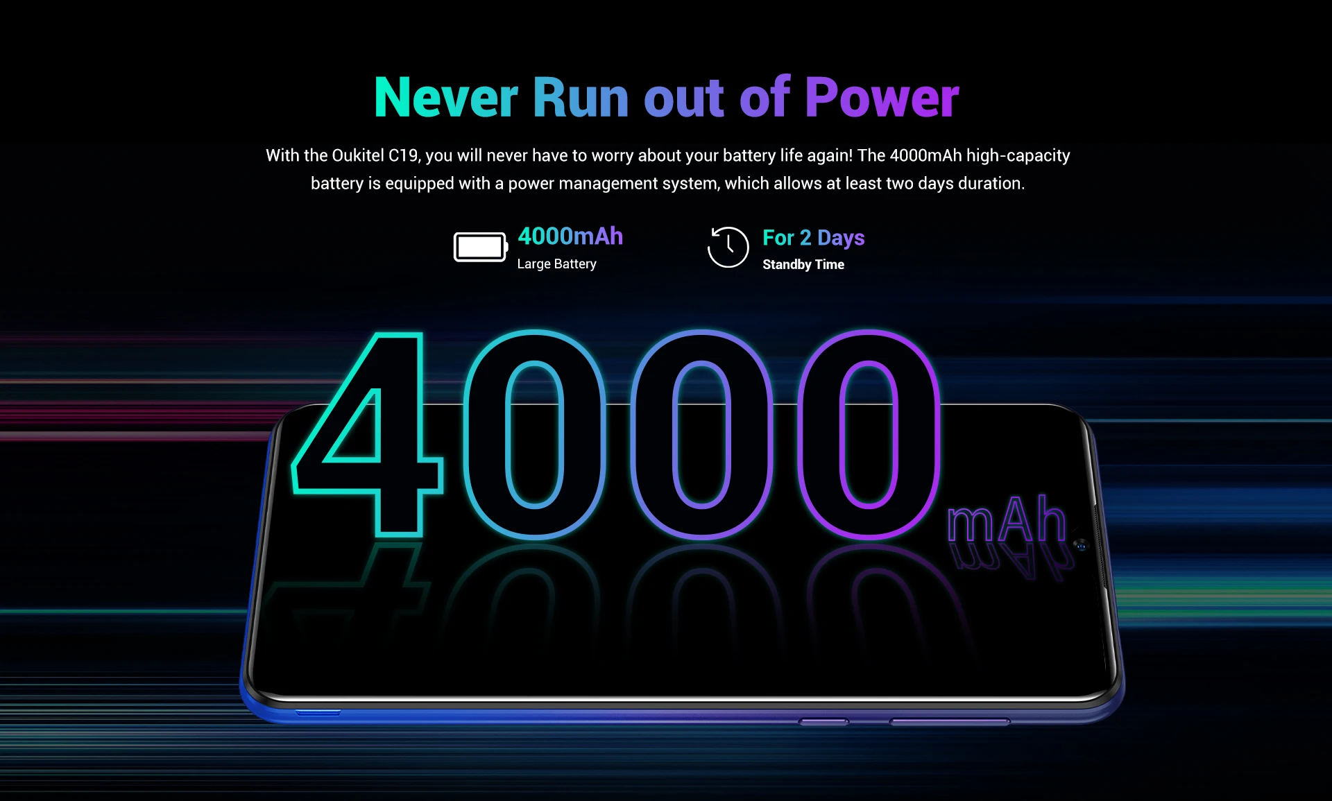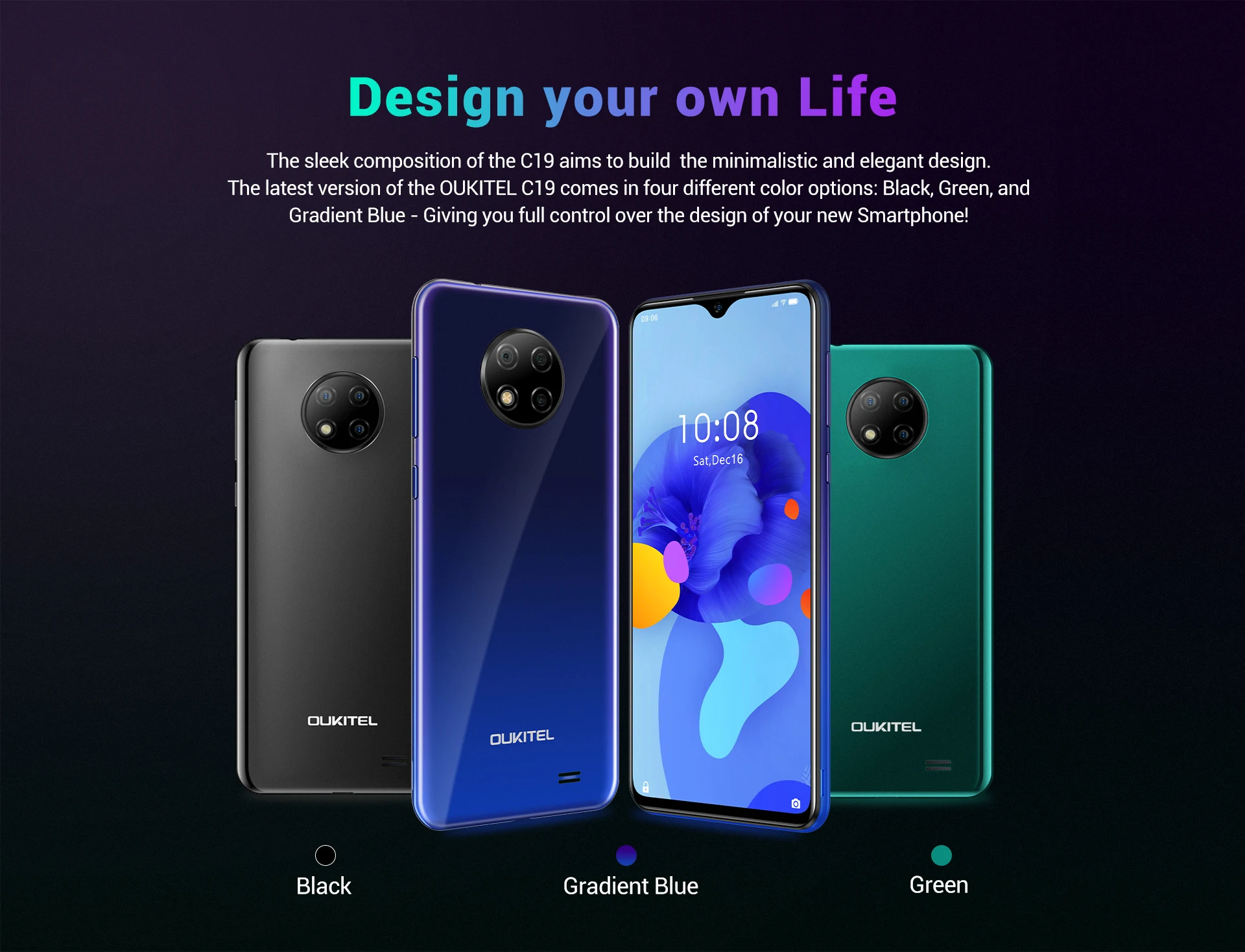 Oukitel C19 Smartphone 4000mAH Battery Android 10.0 Mobile Phone 6.49”HD+In-cell Display MTK6737 Triple Camera Phone