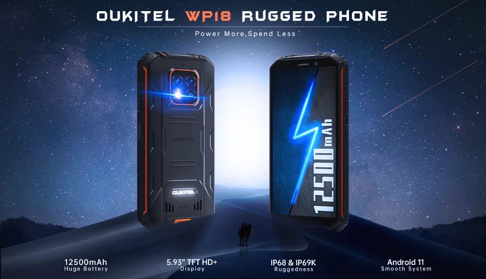 ▶▶【12,500mAh Battery & 5.93”TFT HD Display】 The OUKITEL WP18 Rugged phone has a massive 12500mAh battery! You can hardly find a rugged phone with such a large battery capacity. With OTG cable, WP18 can even act as a power bank! You can charge most smartphones or tablets. With 5.93”HD + screen design with a resolution of 1440*720 pixels, giving you the best feeling of a full-screen smartphone.