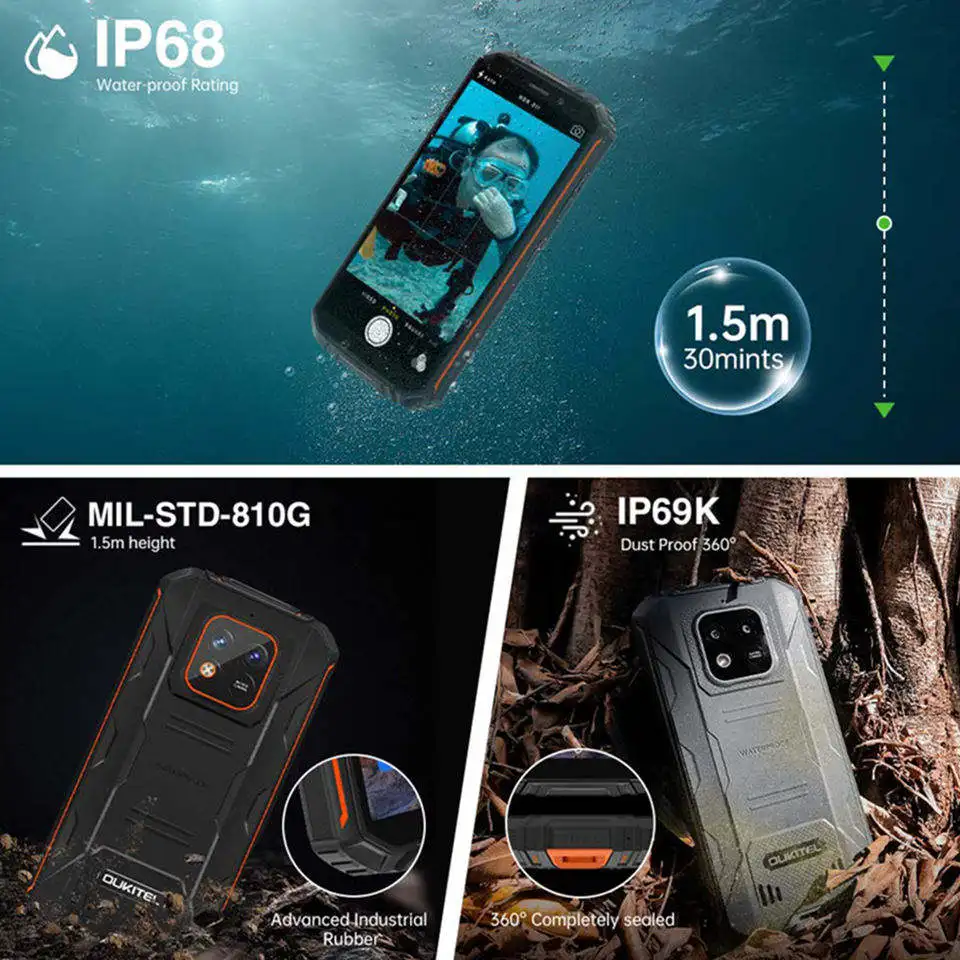 ▶▶【IP68 & IP69K & MILSTD-810G Water-proof Dust-proof Drop-proof】By meeting the highest waterproof rating standard IP68, the OUKITEL WP18 Rugged phone could guard against the water up to 1.5 meters (4.92 feet) for 30 mins, and against dust, dirt, and sand. No need to worry about any scratching and accidental drops. OUKITEL WP18 the best phone for extreme sports enthusiasts, outdoor workers in 2022.