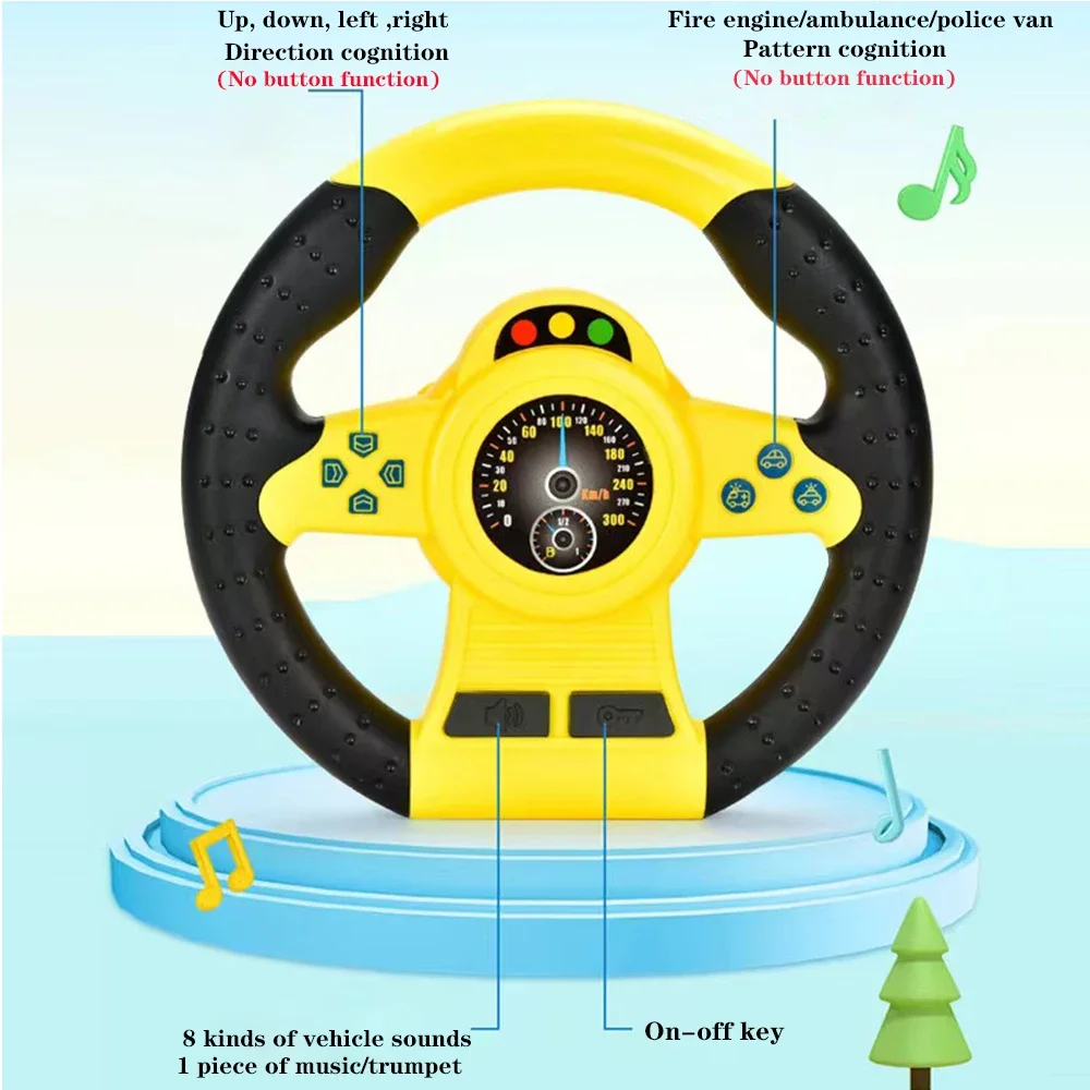 Simulation Steering Wheel Toy Montessori Eletric With Light Sound Baby Kids Musical Educational Copilot Stroller Steering Toy