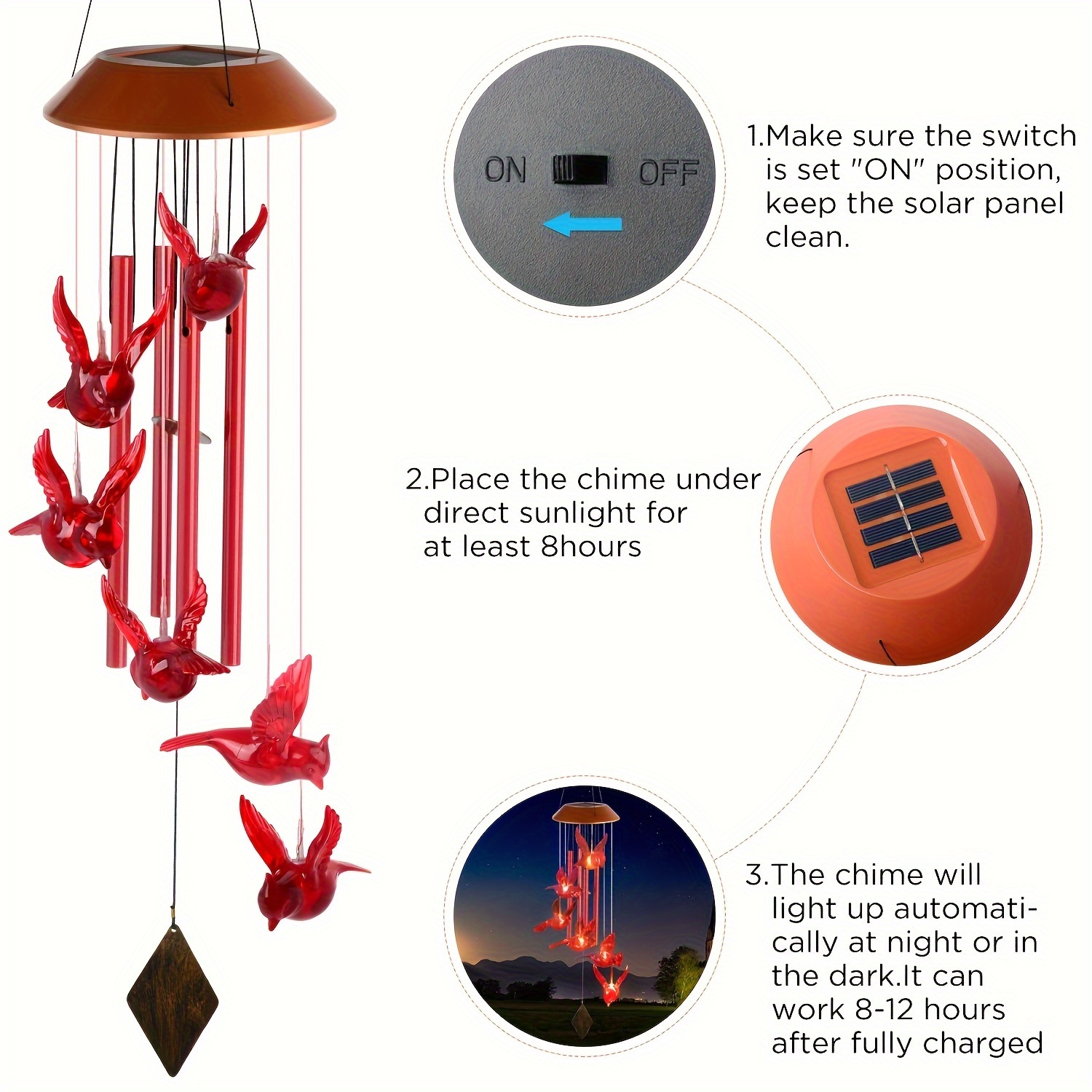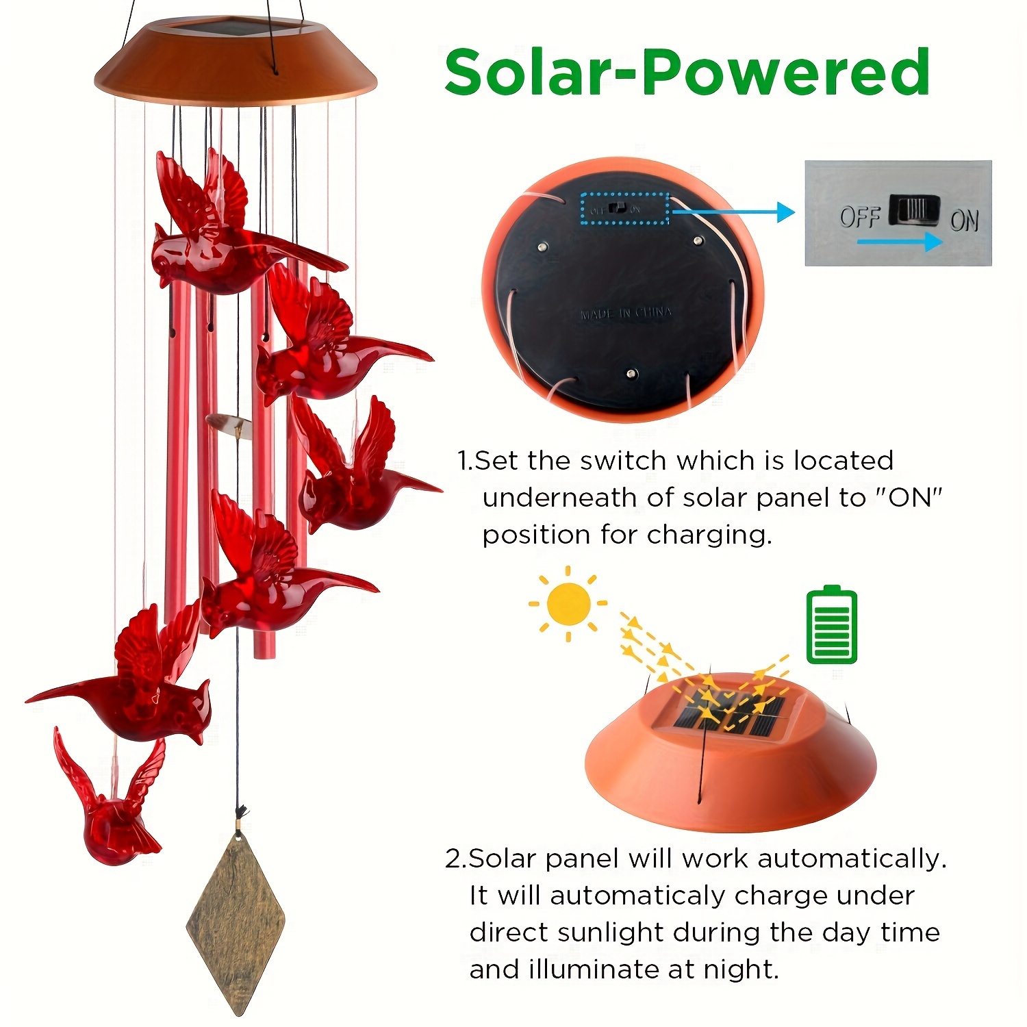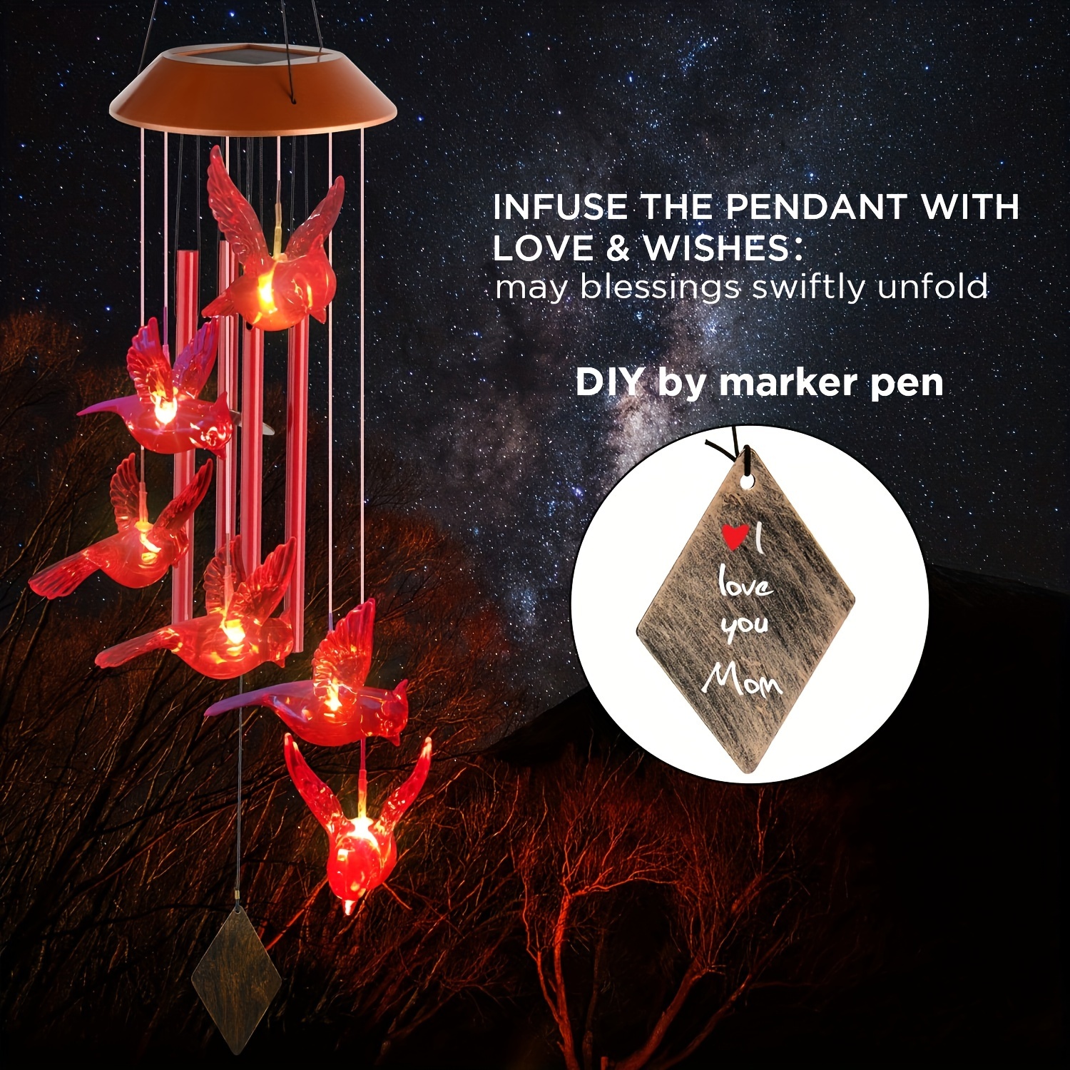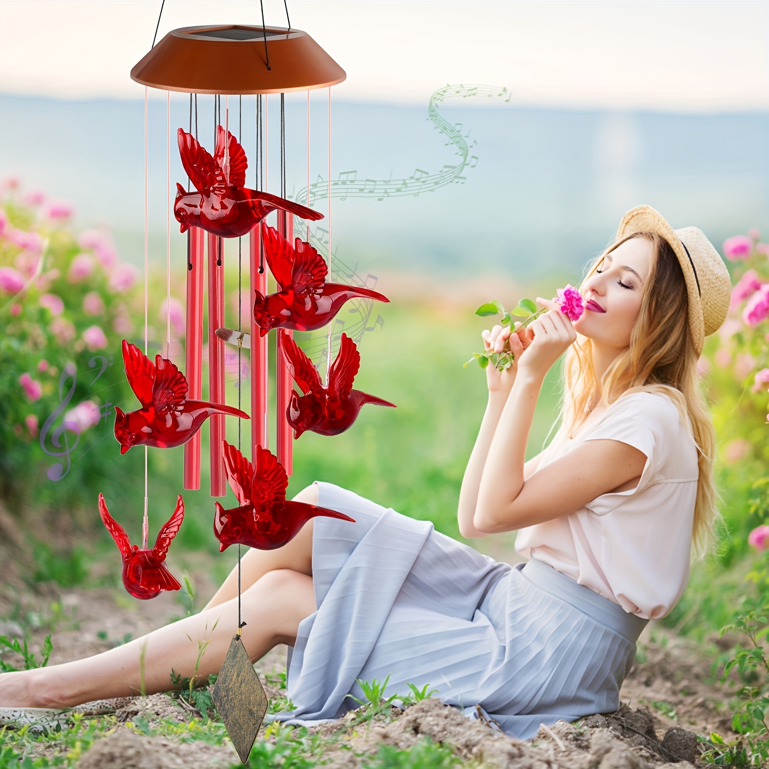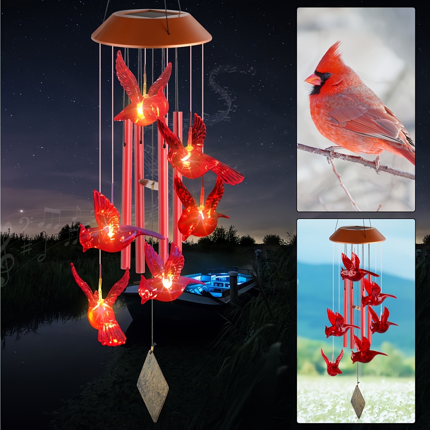 Solar Cardinal Wind Chime Lights Cardinal Gifts for Women Mom Grandma Wife Parents Sister Teachers Friends Unique Birthday Gift Gardening Gift Housewarming Gifts Cardinal Lover Gifts Outdoor Solar Garden Decor for Yard Patio